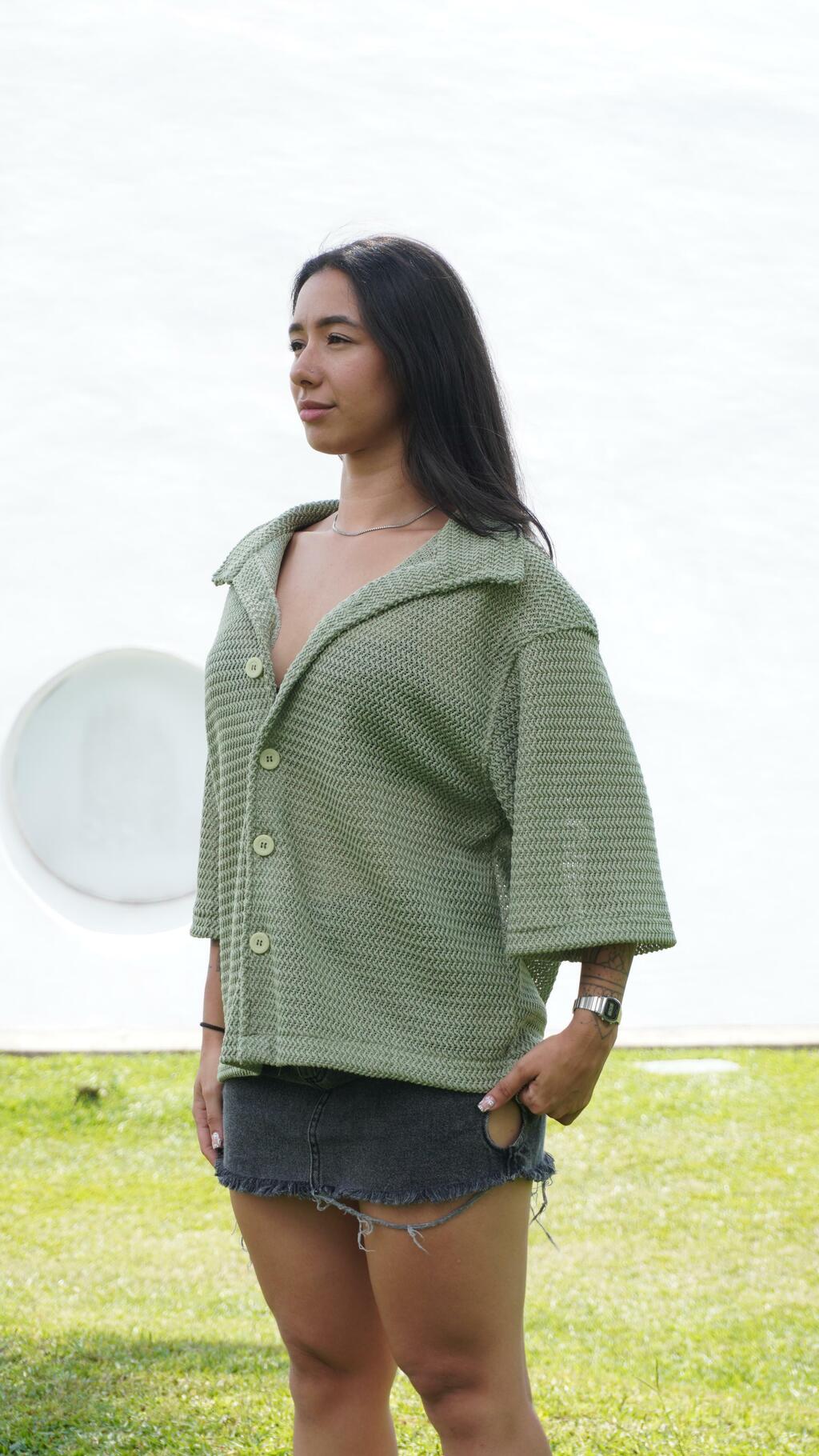Camisa Lucabrand Malha Crochet 1.0 - Pistachio Green