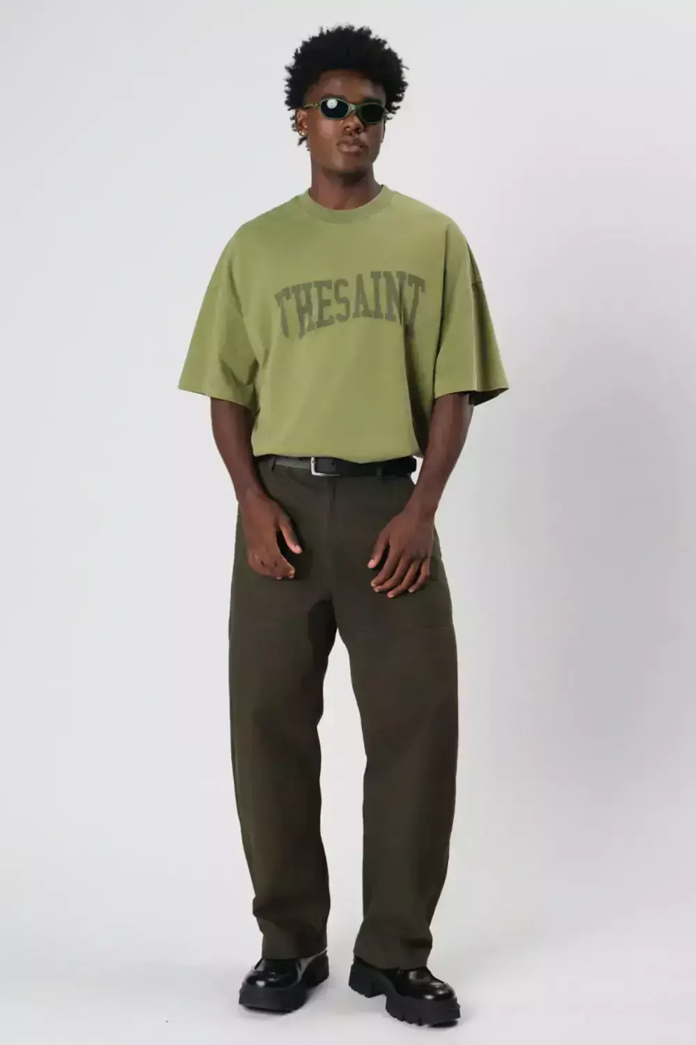 T-SHIRT OVERSIZED THESAINT STONED DARK GREEN]